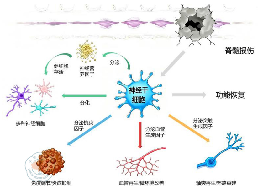 脊髓损伤是一种严重的中枢神经系统创伤性病变,患者表现为损伤平面以下感觉、运动及自主神经功能障碍。神经干细胞(NSCs)具有强大的自我更新能力、多向分化潜能以及独特的微环境调节功能。本文重点围绕NSCs移植治疗脊髓损伤的作用机制进行综述。研究表明,NSCs不仅可分化成神经细胞,更可通过复杂的细胞间相互作用和微环境调控机制,在神经保护、轴突再生和神经环路重建中发挥重要作用。然而,NSCs移植治疗脊髓损伤仍面临移植细胞存活率低、定向分化效率不足和胶质瘢痕阻碍等挑战。未来可结合基因技术并运用生物材料,提升细胞存活能力以及改善受损微环境,从而推动NSCs移植治疗脊髓损伤的研究从基础走向临床,为脊髓损伤患者带来新的希望。